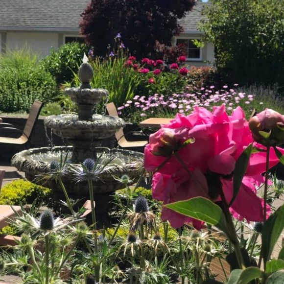 Enjoy all your favourite comfort foods and pastries, either in our spacious indoor dining area or outside on our terrace surrounded by our flowers gardens and fountain. Can't get away from home or work? We'll come to you, subject to driver availability . Order in advance by email or phone call to us.